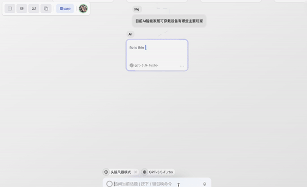 它在形式上最大的亮点是,把纵向的聊天记录,转变成了动态的画布,为人机交互提供了一种很新的方式。